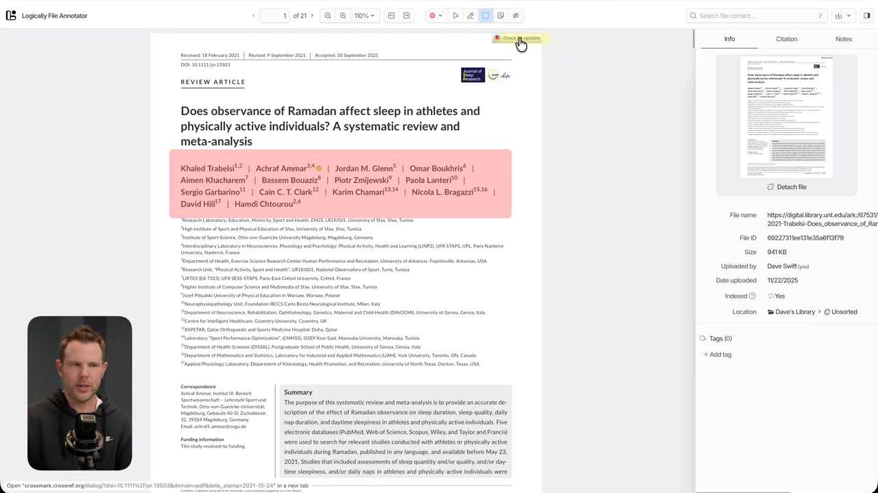 There's a useful "check for updates" feature that verifies you have the most recent version of documents—helpful when working with papers that might be revised or updated over time.