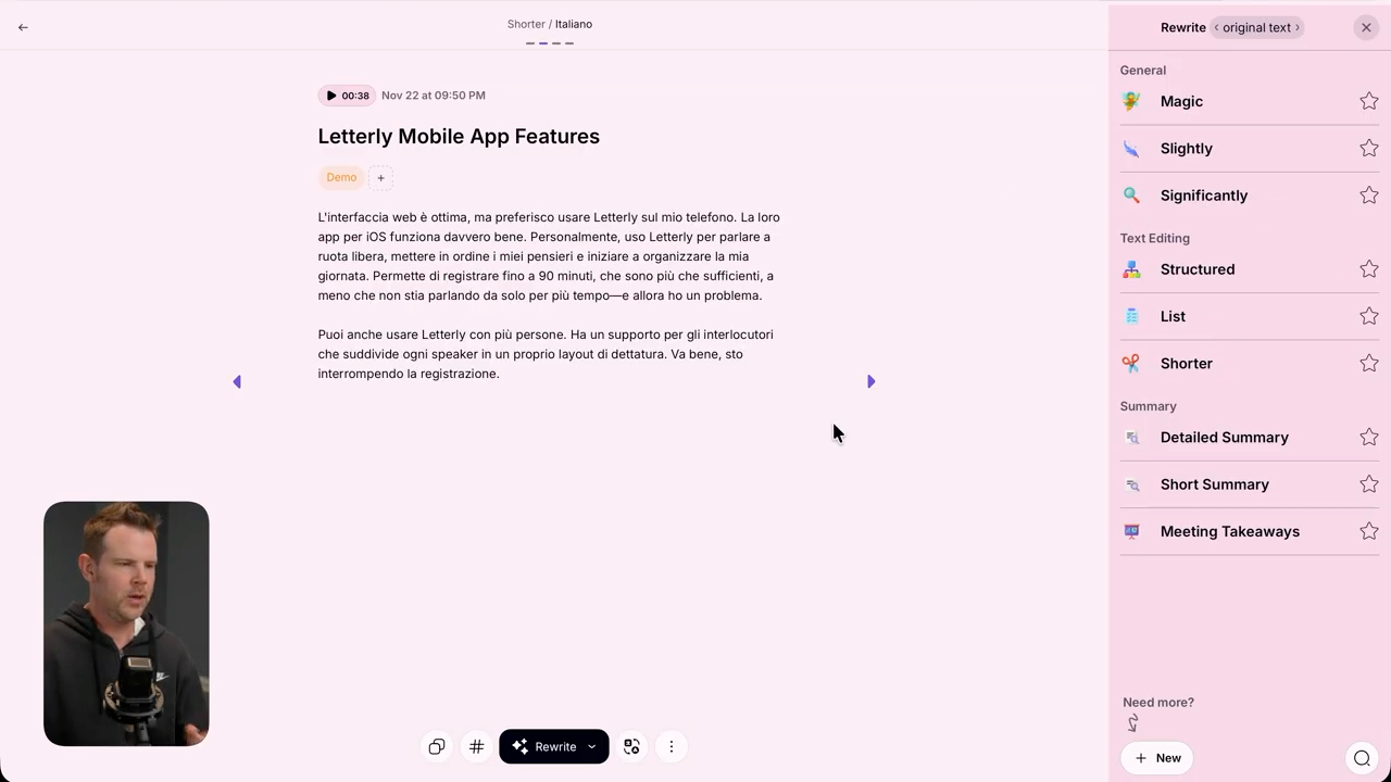 What impressed me most was the quality of the cleaned-up output. I intentionally recorded rambling, unstructured voice notes with filler words and tangents, and Letterly consistently produced clean, well-organized text.