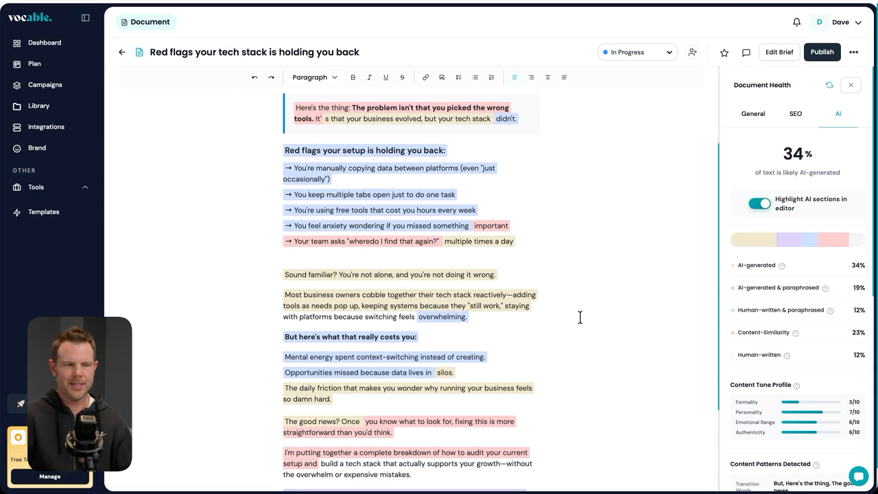 The detection isn't perfect (no AI detection tool is), but it provides a useful signal about which sections might benefit from additional human editing.