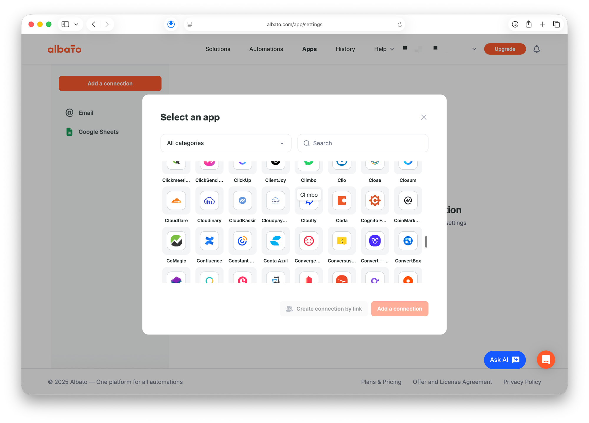 Albato is more like a traditional Zapier-type tool. With these types of platforms, I always recommend looking at what apps are supported natively. With Albato, you get a ton of integrations.